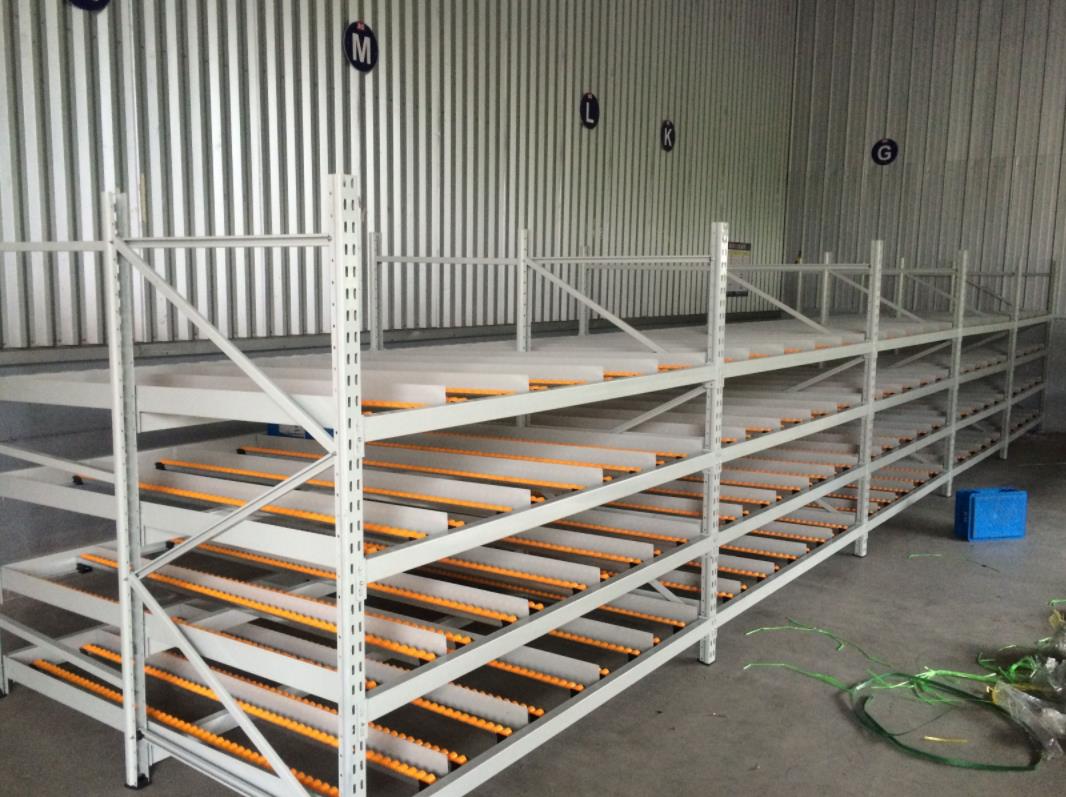 1、采用滾輪式鋁合金等流力條,利用貨物自重實現貨的先進先出。